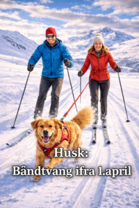 Dette er ingen Aprilsnarr, men i morgen 1.April er det båndtvang på alle hunder som er i skiløyper og ellers i fjellet. NB! Langline er IKKE tillatt.